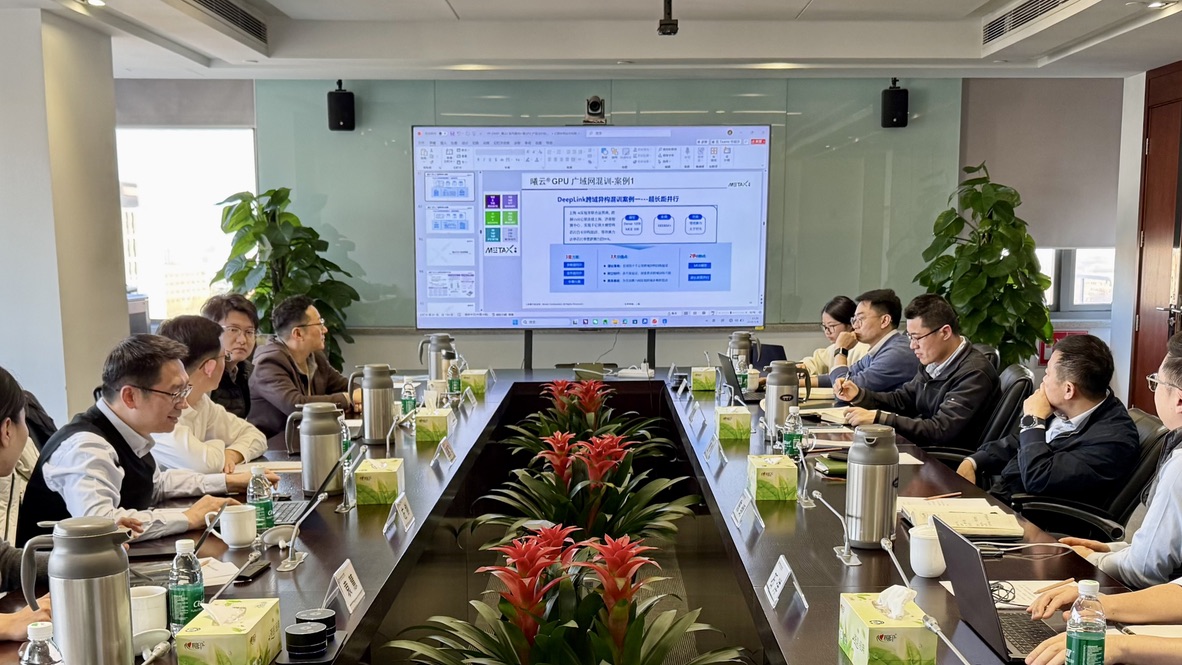 作为能源领域科技创新标杆,国家电投集团中央研究院在人工智能领域的深厚积淀与前瞻布局,为三方合作奠定坚实基础。交流中,沐曦股份展现的国产信创算力、垂直行业大模型等技术突破获高度认可;能辉科技聚焦“新能源+算力”战略转型,分享算电协同平台搭建、智算中心运维服务等实践成果,提出依托低电价地域布局国产算力中心集群的远见构想。三方就产业人工智能升级、行业agent共建、AI4S能源应用等关键议题深入研讨,初步达成多项共识。